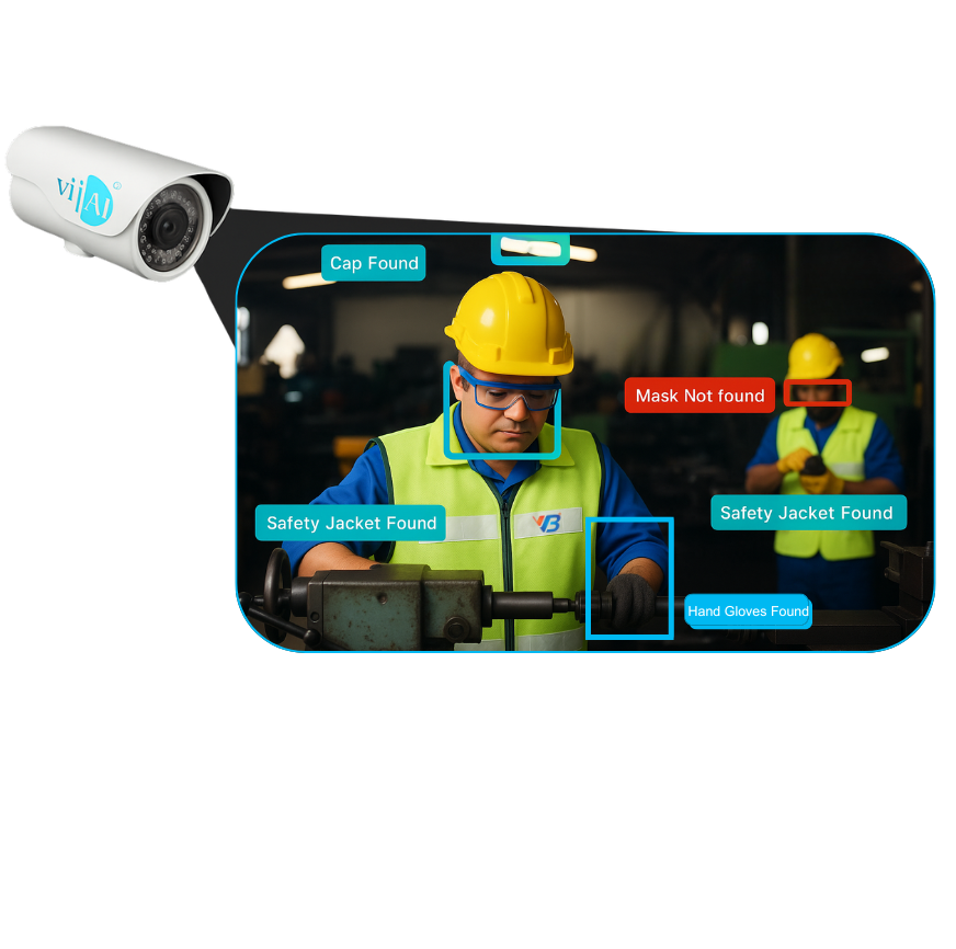 An advanced AI-driven solution that uses CCTV/IP cameras to monitor PPE compliance in real-time. It detects when PPE is missing or worn incorrectly and immediately alerts employees or safety personnel, enabling quick correction and ensuring a safer workplace.