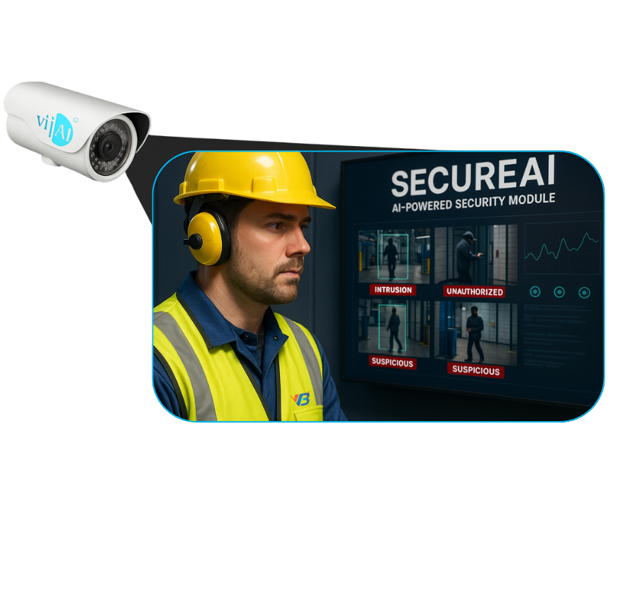 SECUREAI leverages advanced AI vision technology to identify intrusions, unauthorized entries, and unusual behaviors in sensitive areas. By monitoring factory and industrial sites in real time, SECUREAI helps organizations prevent security breaches, protect assets, and maintain a secure operational environment.